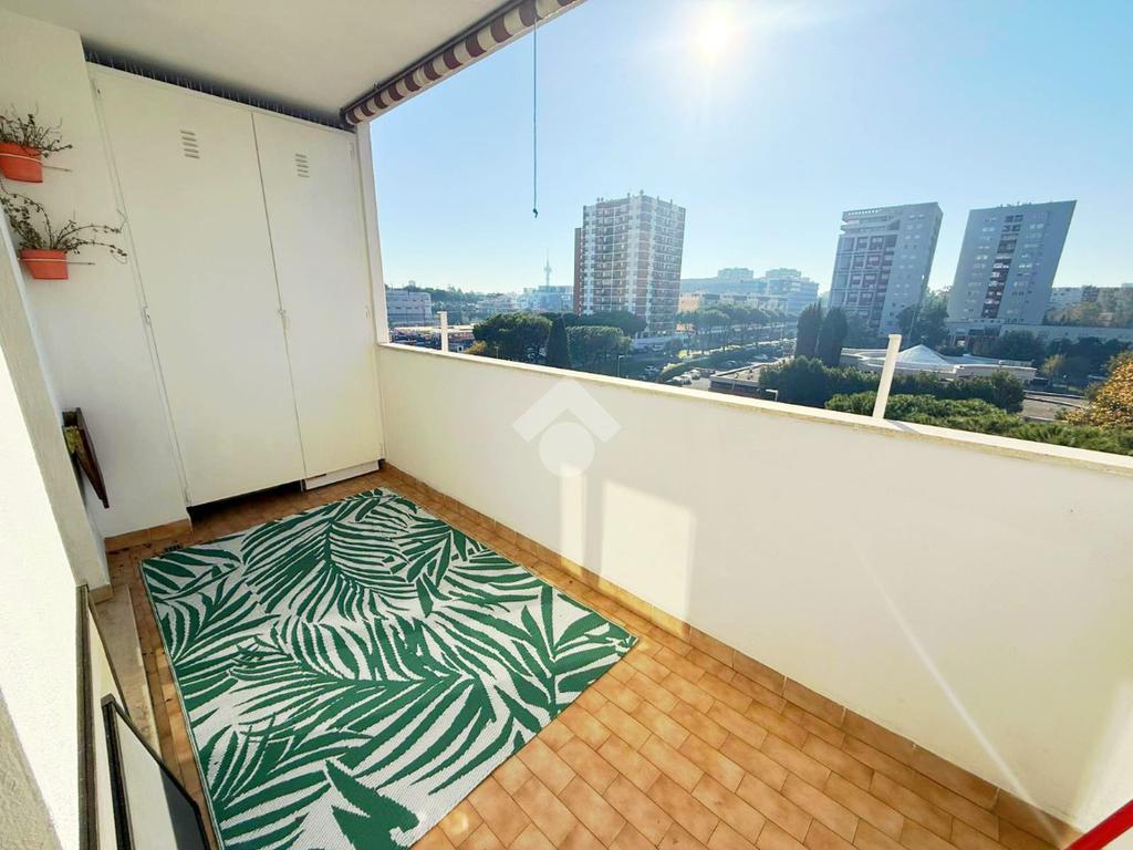 Via Laurentina, altezza Cecchignola, in stabile in cortina con doppio ascensore. Proponiamo in vendita un ampio bilocale di 60 mq al quarto piano con ascensore, composto da ingresso, ampio soggiorno con cucinotto separato, camera da letto matrimoniale con cabina armadio e bagno non finestrato. Terrazzino di 9 mq accessibile dal soggiorno e dalla camera matrimoniale.